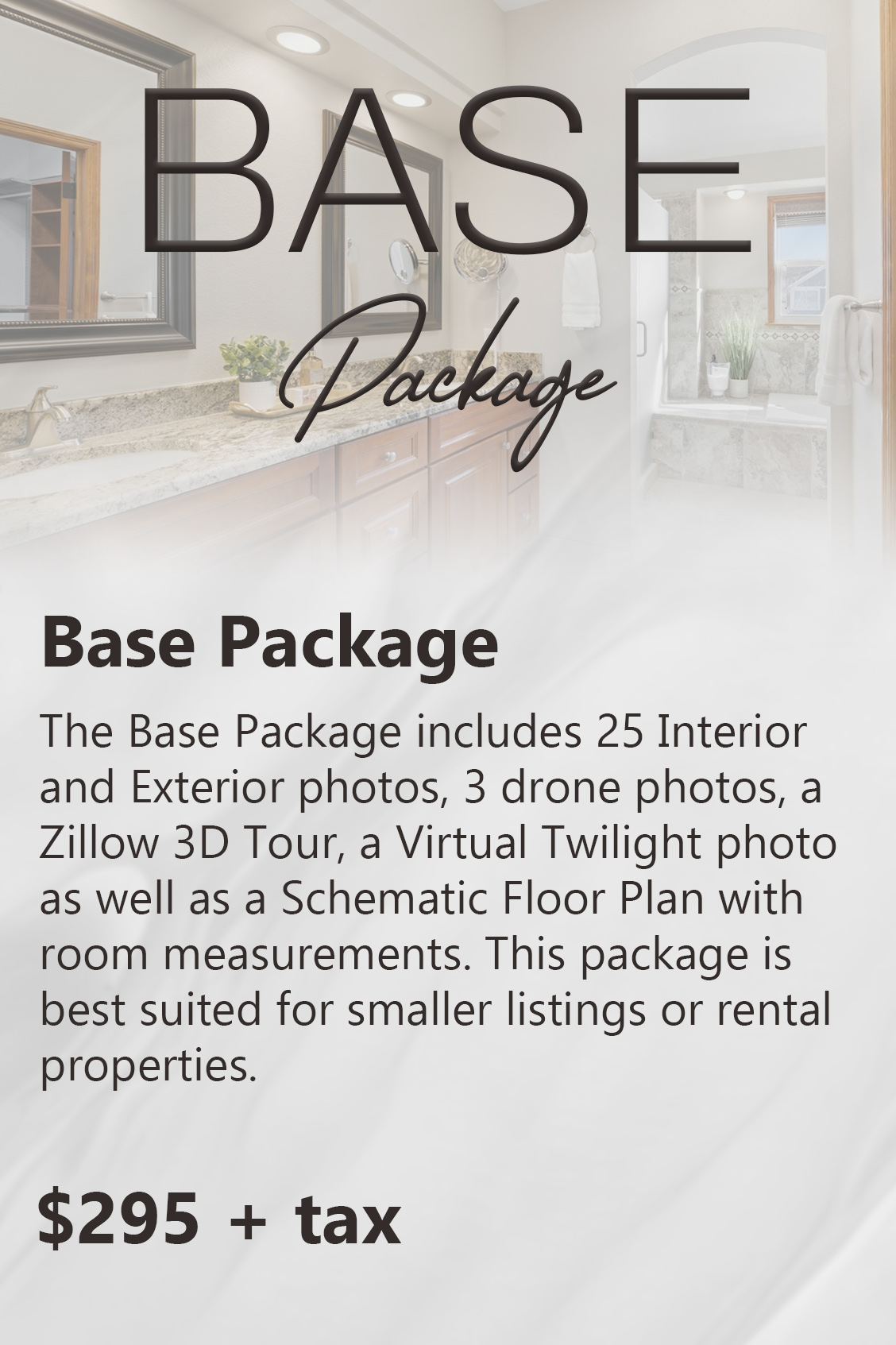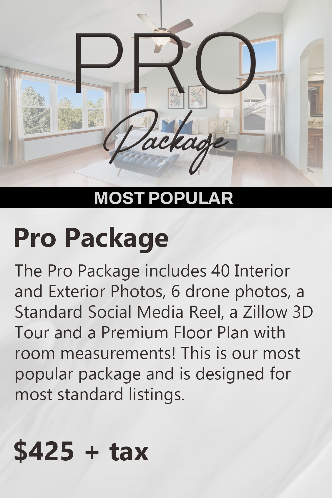 Our virtual twilight photo package is $95 plus tax for 4 photos, and our standard twilight photos are $225 plus tax for 4 photos.